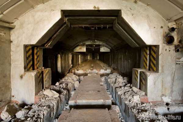 ДвериЗдесь было все, для полноценного существования после удара ядерной бомбы. В наше время, даже громадная дверь снята. Не говоря уже о колючей проволоке по периметру. По тоннелям с рельсами, от которых остались одни впадины, крылатые ракеты подавали на спусковые площадки на специальных тележках с электрическими двигателями.