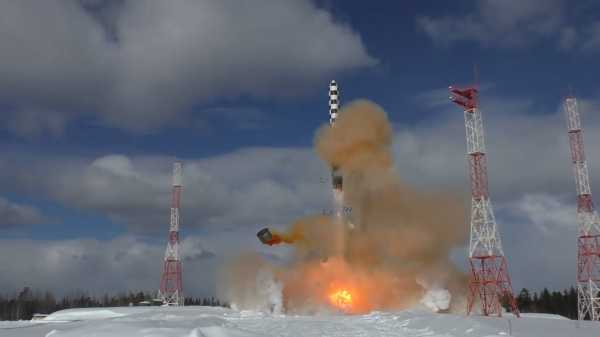 Бросковый пуск МБР 15А28 / РС-28 «Сармат» на полигоне Плесецк, 29.03.2018 г. (http://www.mil.ru/)