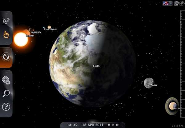 Данное приложение может отображать позиции планет в режиме реального времени, программа автоматически настраивается на ваш айпи адрес и выдает на экране расположение звезд по вашему времени. Если вы искушенный астроном, то можете покопаться в настройках интерфейса, выбрать свое время, режимы отображения – 3D, панорамный вид или гелиоцентрический.
