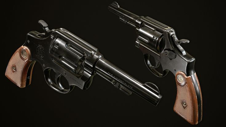 4,2-линейный револьвер «Смит и Вессон» (без шпоры спусковой скобы) в руке стрелка
