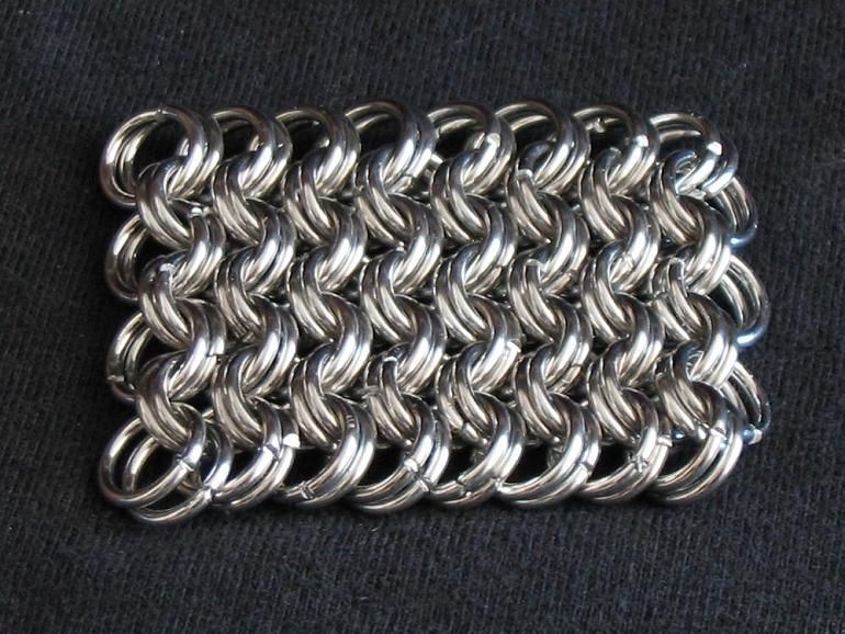 Изготовление кольчуги из более плотного, но менее эластичного материала предполагает другие схемы плетения.