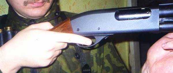 Иж лучше, и ощутимо. Ремингтон 870 — кнопка деблокировки затвора выполнена в виде рычага на передней стенке спусковой скобы, слева. Основным неудобством является то, что для того, чтобы нажать на него, надо снять руку с шейки ложи. Рычаг маленький по размеру, зазубренный и весьма тугой — нажимать неприятно и болезненно, особенно мизинцем и безымянным (эти пальцы используются тогда, когда надо предотвратить падение на землю патрона из патронника либо гильзы — ладонь перекрывает окно СК). Я так мизинцем и не смог нажать без чрезмерных болевых ощущений, поэтому в тестах выжимал его безымянным пальцем.