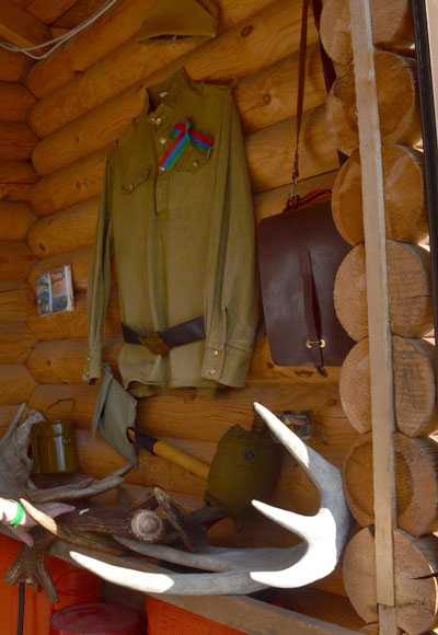 Кроме тира военную тематику усиливает военно-полевая кухня, а в сувенирном магазине можно увидеть солдатские вещи: гимнастёрка, сапёрная лопата, фляжка, котелок и почему-то оленьи рога. Только по-моему эти вещи выставлены здесь не для продажи (ценников на них не было), а для антуража.
