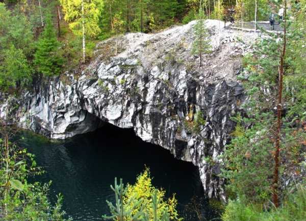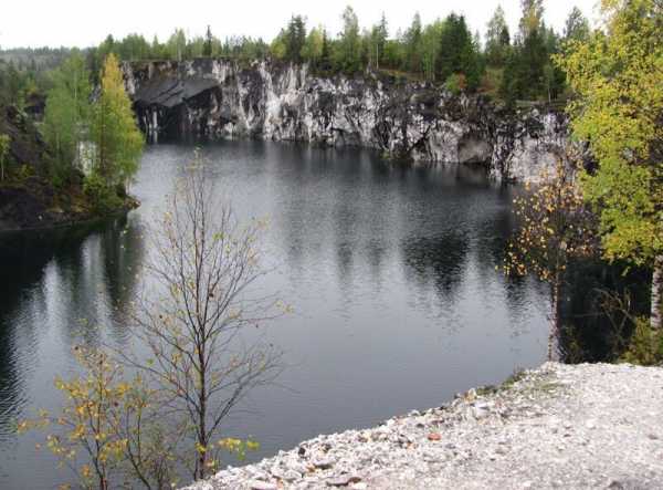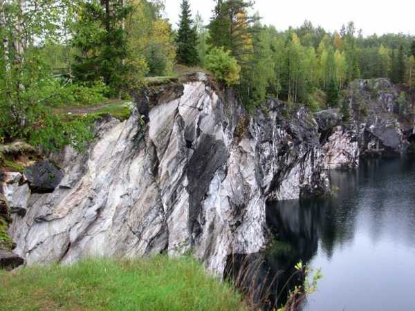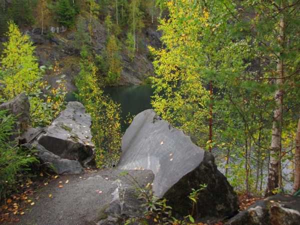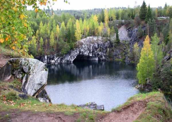 От Сортавалы до горного парка «Рускеала» — 30 километров на автобусе. Первые каменоломни в этих местах впервые появились ещё в 1765 году, во времена Екатерины II. На мраморном месторождении тогда было заложено пять карьеров, на которых добывался мрамор четырёх видов. Мрамор Рускеалы использовался при облицовке многих знаменитых зданий Петербурга — Исакиевского и Казанского соборов, Эрмитажа, Михайловского замка и других. В советское время рускеальским мрамором были облицованы многие станции Ленинградского метрополитена. Промышленная добыча мрамора осуществлялась здесь на протяжении более 200 лет — вплоть до начала 1990-х годов. С начала 2000-х бывший главный карьер по добыче мрамора был взят под охрану, стал объектом культурного наследия и сегодня посещается тысячами туристов. По специально организованным тропинкам можно обойти весь карьер по периметру, а по водной глади озера организуются лодочные прогулки, в ходе которых можно заглянуть в мраморные пещеры. Здесь очень красиво! Даже осенним дождливым сентябрьским днём — давайте полюбуемся!
