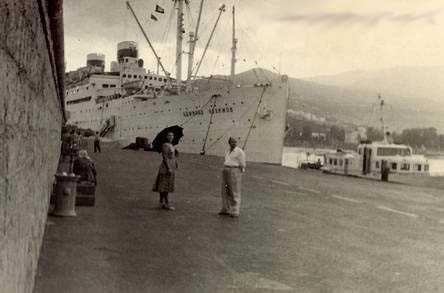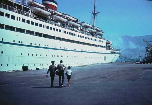 Ровно в 22:00 к лайнеру подошел буксир. Был убран трап. Едва корабль начал движение, как раздалась команда «СТОП». Из подъехавших четырех автомобилей «Волга» черного цвета вышел импозантный мужчина в форме с женой и двумя детьми.