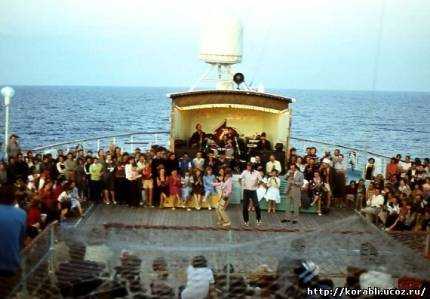 С.И. Сапожников, матрос п/х «Адмирал Нахимов»: …В 22 часа прозвучало: «Палубной команде аврал, занять места по швартовому расписанию». Но сам отход задержался на полчаса из-за опоздания какого-то важного пассажира. И вот, отданы швартовые, буксиры помогли отойти судну от причала, и пароход стал медленно набирать ход. Нас, матросов, еще долго не отпускал второй помощник капитана Чудновский. Его вахта длилась с 20 до 00 часов, и время шло в его пользу, на мостик он явно не спешил. И, как показали дальнейшие события, лучше бы он там и не появился бы в тот вечер. После аврала мы с друзьями переоделись, и, как обычно, собрались на кормовой палубе, где играла музыка и танцевали пассажиры. Пароход светился многочисленными огнями, огромный плывущий остров, который виден за многие мили ночного моря. Я с товарищем стоял у бара и пил кофе. На минуту я вспомнил, что забыл в каюте ключи от кормовой аварийной партии. В мои обязанности входило по тревоге открыть и выдать аварийное имущество. Но вскоре я забыл о тревогах, наслаждаясь музыкой и видом танцующих пар…»