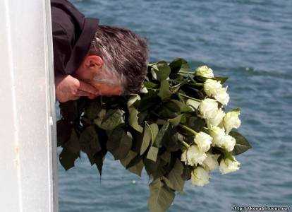 …Включив сирену, катер начинает описывать круги вокруг места гибели судна. На воду летят цветы. Через некоторое время небольшой участок моря будет весь покрыт венками и цветами. После, на берегу, состоится поминальный обед.