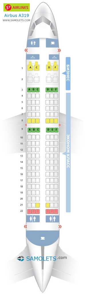 Схема салона Airbus A319 S7 Airlines. Лучшие места в самолете