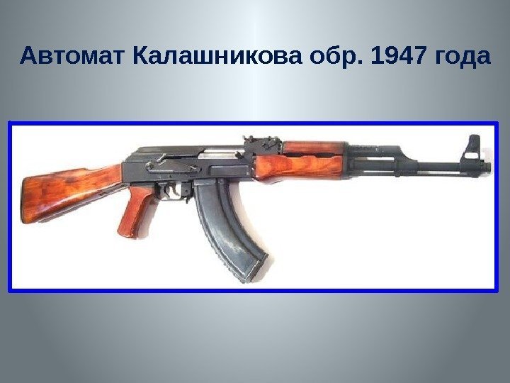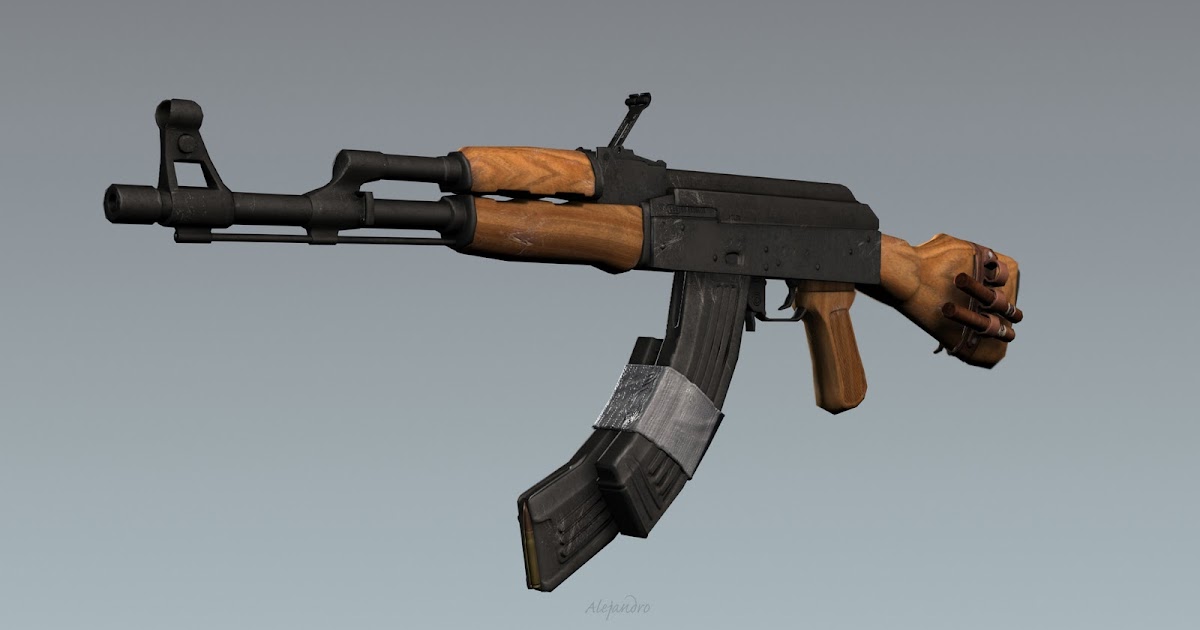 АК-47 — это короткое, компактное оружие с селективным огнём, разработанное Советским Союзом в 1946 году и стреляющее патронами, промежуточными по мощности между автоматными и винтовочными патронами. Он имеет мягкую отдачу, что дает ему возможность вести эффективный полностью автоматический огонь на расстоянии до 300 метров.