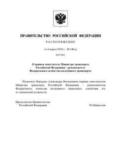 Премьер-министр России Михаил Мишустин назначил Александра Нерадько первым заместителем министра транспорта Российской Федерации – руководителем Федерального… РИА Новости, 06.03.2020