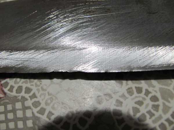 Также, как и в предыдущем случае, заточка происходила сначала на стороне 400 грит, затем – 600 грит. Зазубрины конечно исчезнут еще не скоро, а вот погнутости хорошо сточились. Получилось вот так