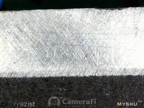 И посмотрим на режущую кромку ножа, что бы после заточки можно было увидеть разницу: