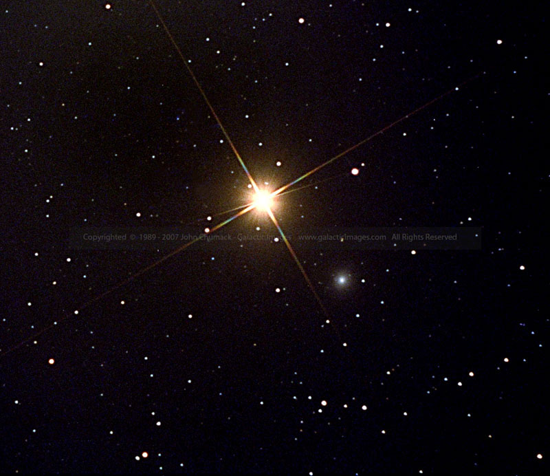 Альмак – система, которая состоит из трех объектов. Главная – желтая звезда, которая имеет блеск второй величины. Вокруг нее есть два спутника: физически связаны голубые звезды.