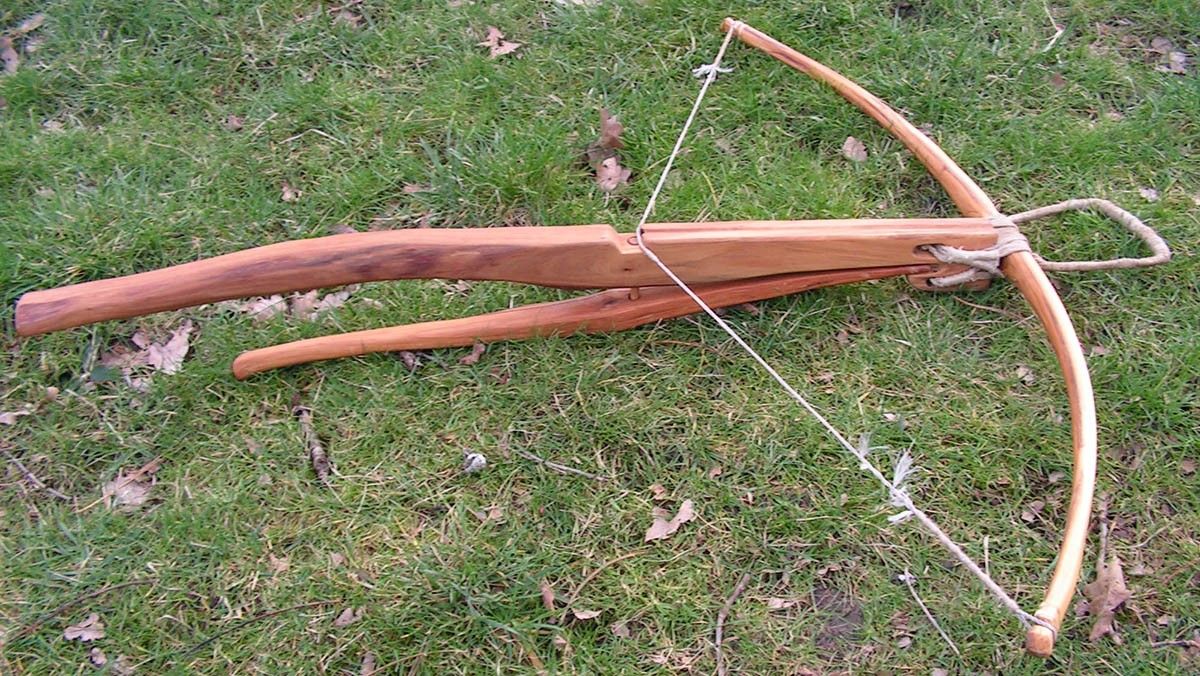 Чтобы компенсировать нехватку навыков и набрать больше лучников, произошло изобретение арбалета. Тогда арбалеты не были такими компактными. Они были луком, но горизонтально.