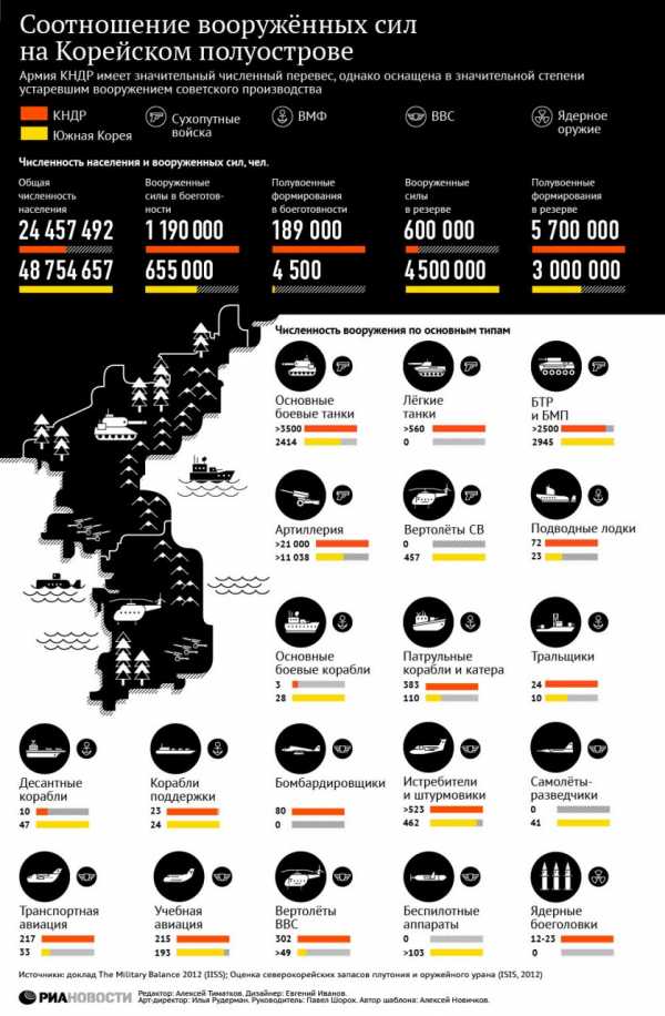 Сравнение сил армий Северной и Южной Кореи Больше информации