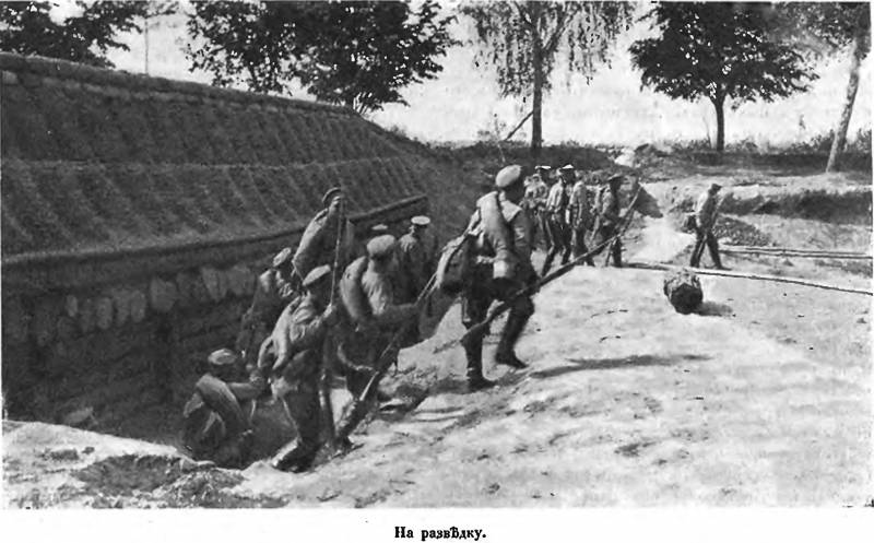 Штыковые удары практиковались в различной обстановке – например, в ходе разведки боем. Так, 16 июня 1916 г. 503-й пехотный Чигиринский полк 126-й пехотной дивизии 45-го корпуса проводил усиленную разведку с целью захвата пленных — в направлении на кол. Ковбань. Батальон полка, воспользовавшись темнотой, незаметно подошел к вражеским окопам у Ковбани, штыками переколол гарнизон и ворвался в деревню. Поднялась паника. Русские вновь бросились в штыки – и, переколов более 150 человек, захватили 38 пленных [Из боевого прошлого русской армии. Документы и материалы о подвигах русских солдат и офицеров. М., 1947. С. 349.]. А в другом эпизоде группа разведчиков 201-го пехотного Потийского полка, ночью подкралась к немецкой заставе – и внезапно атаковала последнюю. Немцы отчаянно оборонялись — но большая часть гарнизона заставы была переколота штыками, а 50 человек (включая офицера) захвачены в плен. Причем другая разведгруппа, выбив германцев из деревни, захватила несколько пулеметов и пленных. На следующий день трофеями разведчиков стали еще 77 германцев и 2 пулемета.