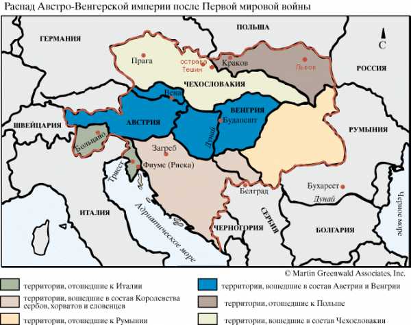 На территории бывшей империи возникло несколько новых государств — Чехословакия, Польша, Австрийская республика. Венгрия. Остальные регионы страны вошли в состав Румынии. Югославии и Италии .