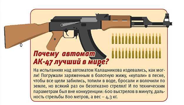 «Автомат Калашникова — это самое распространенное в мире оружие. Он изобретен в 1947 году и ныне стоит на вооружении почти 50 армий.