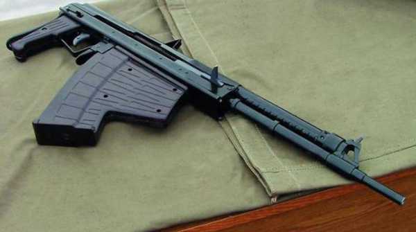 Автомат имеет телескопический приклад из проволоки круглого сечения, который в походном положении убирается внутрь ствольной коробки.