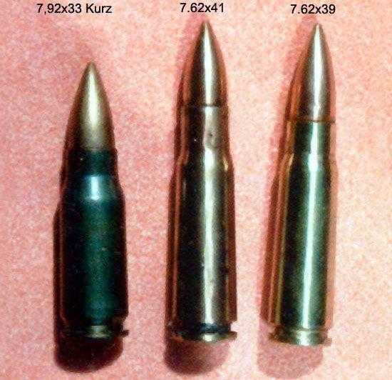 Первое и основное любое оружие создается под определенный боеприпас. Конструктору дается боеприпас и заказчиками(военными) определяются основные характеристики будущего оружия. Уже с 1942 года военные поняли, что изменились расстояния боя для личного стрелкового оружия солдата. Дистанции боя уменьшились до 200-600 метров. На таких расстояниях пистолетный патрон по пробивной силе слаб, а винтовочный силен. В такой ситуации возникла потребность в промежуточном патроне между пистолетным и винтовочным патроном. И такой патрон появился в Германии и почти одновременно под него стали создавать штурмовую винтовку StG-44 Штурмгевер. Никем не отвергается тот факт, что серьезные работы в СССР по созданию промежуточного патрона и оружия под него начались под влиянием немецких трофеев (захваченных зимой 1942-43 года под Ленинградом MKb.42, будущий Штурмгевер), но далее они шли вполне самостоятельно.