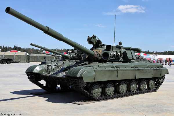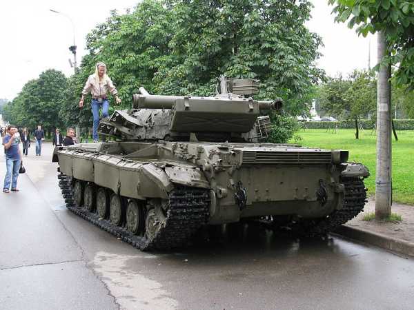 … Производившийся в Харькове, на Украине, Т-64 был оснащен мощной 125-мм гладкоствольной пушкой с автоматом заряжания, и мог выпустить восемь снарядов в минуту на дистанцию до 2000 метров. Он имел экипаж в три человека, улучшенную броню, новый 780 л. с. двигатель, передовые приборы ночного видения и (подобно «Чифтену») лазерный дальномер. Однако, этот танк не пользовался большой популярностью у танкистов. Они находили его ненадёжным. С него часто слетали гусеницы. По сути, он создавался в спешке, как ответ на перспективный американский танк MBT-70, так и не принятый на вооружение.
