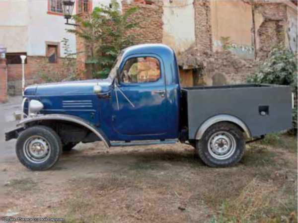 | Вот так по необходимости родилась идея создания легкового автомобил я только с грузовой платформой на 600–700 кг, а заодно и простой кабиной от грузовика. Задуманное удалось воплотить в металле в 1959–1960 годах. Именно тогда появился первый автомобиль, выполненный в соответствии с новой концепцией. Основой для него послужил списанный броневик ЗИС-115. Фактически вместо демонтированного бронекузова на раму установили кабину с оперением и подножками от трехосного грузовика ЗИС-151 (ЗИЛ-157), а также деревянную, чуть зауженную и укороченную бортовую платформу, снабженную четырьмя дугами и тентом. Откидным сделали только задний борт. | ЗИС-115 |