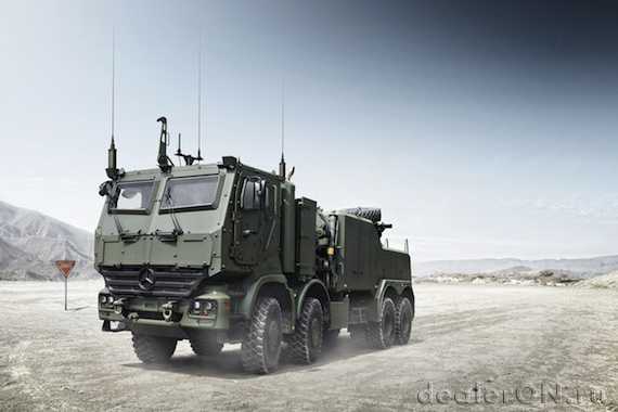 Если предыдущий армейский тягач удивил вас своей грузоподъемностью, то знакомтесь — еще один силач, на этот раз из Германии. В отличие от предшественника, он с легкостью берется за прицеп с Леопардом 2 (параллельно отметим — лучшим основным танком в мире на сегодня), но не это делает грузовик Мерседес лучшим среди военных тягачей. Тягач способен транспортировать грузы массой до 90 тонн. И не только танк, но и кое-что сверху. Так, небронированная версия тягача Мерседес Актрос, на параде в Армении продефилировала по площади «Республики» в Ереване одновременно с танком Т-72 и БМП 2 на прицепе и чувствовала себя при этом вполне комфортно.