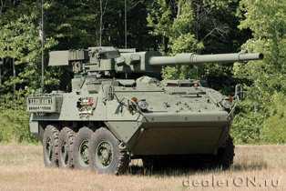 Сухопутная система General Dynamics «MGS» (аббревиатура от mobile gun system – мобильная система оружия), названа так ввиду того, что стоит одному из членов экипажа, состоящего из трех человек, нажать на небольшую кнопочку, как 105-миллиметровое орудие, установленное на корпусе восьмиосной махины отправит «дружественную посылку» на несколько километров. Отметим, что орудие установленное на Страйкере не отличается от того, которое было на первой версии основного танка США, M1 Абрамс.