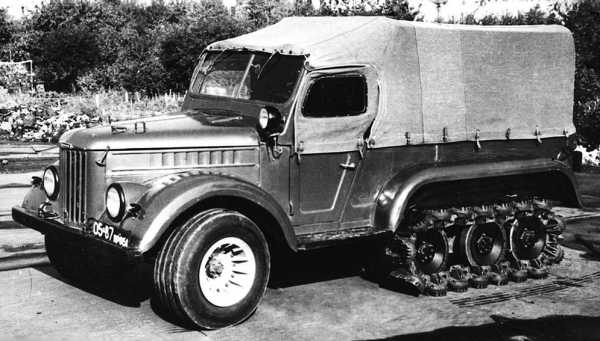 Автомобиль ГАЗ-69 на четырех ведущих гусеницах (из архива С. Вечкова)