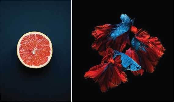 В природе такое сочетание можно увидеть как симбиоз подводных или сумеречных оттенков с животным или результатом деятельности человека.