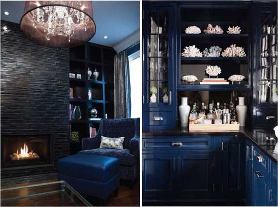 Сочетание синего и черного цвета в интерьере — специфично. Далеко не каждый будет способен находится в обстановке постоянного философского поиска, но с другой стороны – нереальная мистичность создает атмосферу проекции внутреннего мира.