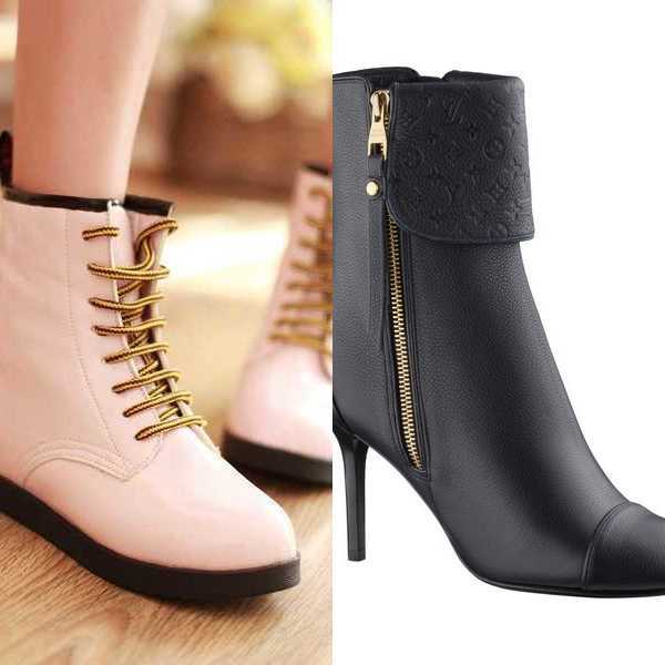 Классическими являются ботинки на высокой подошве песочного цвета, а также черные. Различают три основных типа женских ботинок со шнуровкой.