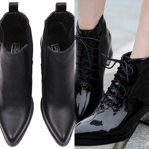 Женщины могут включать в романтический стиль такие ботинки. Черные высокие модели обуви в сочетании с летящими нежными блузками, юбками и даже платьями могут сделать образ девушки неповторимым.