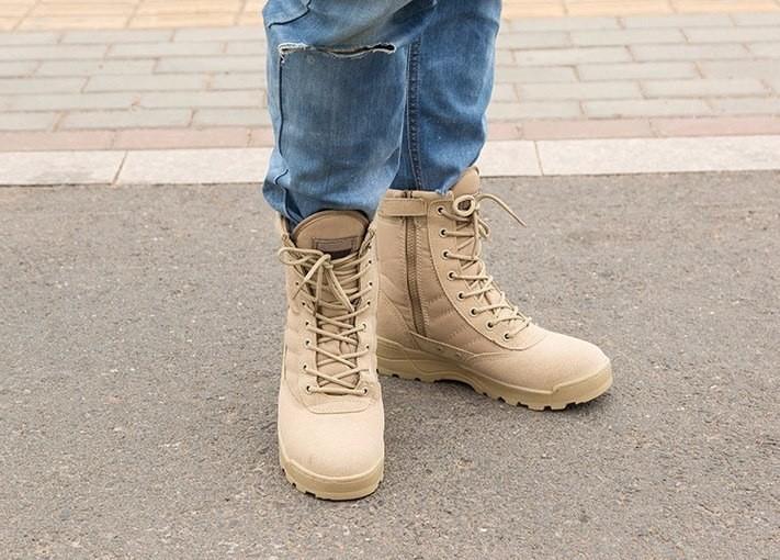 - Берцы «пустынные» шьются специально для местности с жарким климатом. Они выполняются в бежево-песочном цвете из замши, кожи, хлопчатобумажных тканей. Некоторые модели имеют мембрану – тонкую пленку с микроскопическими отверстиями, благодаря которой выводится лишняя влага. Такую обувь можно носить в любую жаркую погоду.