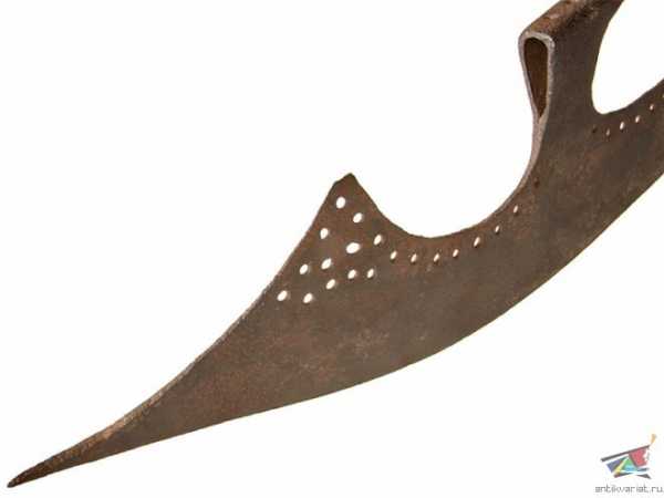 1з-2. Лезвие имеет вид широкого и очень длинного «полулуния» (размер достигает 1.5 м), приварено к стандартному бердыш-ному обуху, верхняя греть оттянута за обух. По всей длине лезвия, вдоль тупья. пробиты ряды круглых отверстий. Экспонируется в Музее «Новодевичий монастырь».