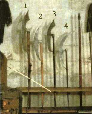 Бердыши типа 2в 1. Музей-заповедник «Троице-Сергиева лавра», Сергиев Посад; 2. Музей-заповедник «Новодевичий монастырь», Москва; 3. Музей Оружия, Тула; 4. Музей-заповедник «Коломенское», Москва |