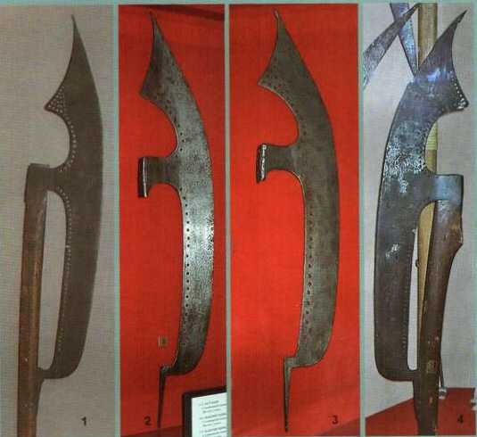 Бердыши типа 2г 1. Национальный Исторический музей, Киев; 2, 3. Музей-заповедник «Новодевичий монастырь», Москва 4. Музей оружия, Тула |