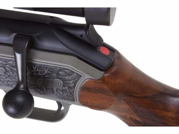 Карабин с продольно-скользящим затвором R8 в стандартной комплектация калибром 9,3х62. Ложа выполнена из ореха.