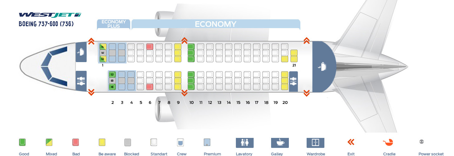 На изображении ниже показана схема салона лайнера Боинг 737-500.