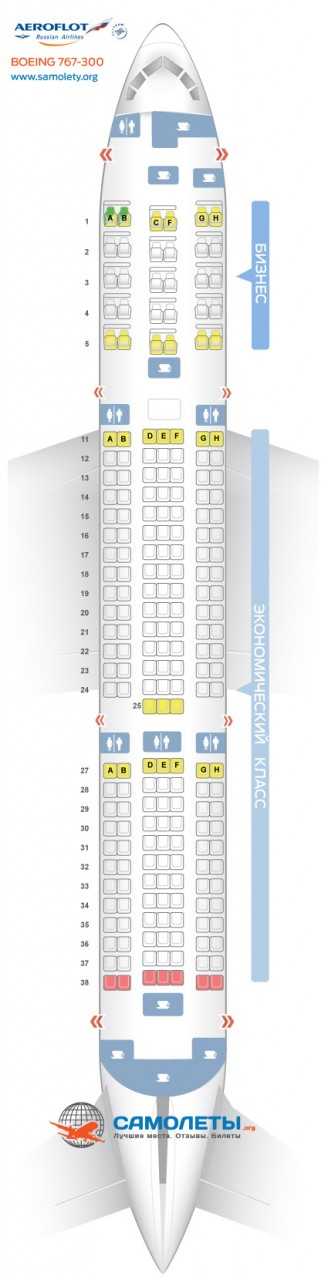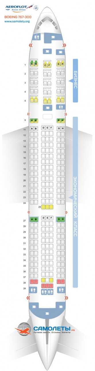 Лучшие места в самолете Boeing 767-300 (Боинг 767-300) Аэрофлот