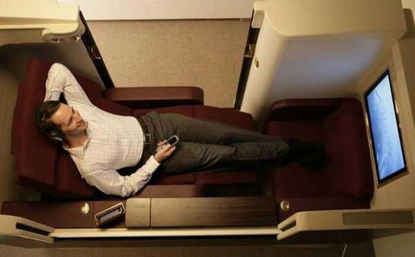 Кресла тут сделаны максимально удобными. Перед каждым пассажиром размещается монитор с диагональю экрана 15,4″. Само кресло имеет интересное строение. Его пластиковая спинка остается на месте, а мягкая часть раскладывается вперед. Так что даже если сосед спереди разложит полностью кресло и ляжет спать на образовавшуюся кровать, то сидящему сзади это не причинит никаких неудобств.