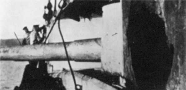 Пробоина в каземате 150-мм орудий «Гёбена», полученная в бою у мыса Сарыч.