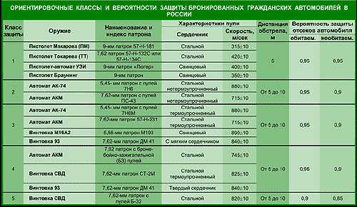 Если же необходим отпор покушениям с гранатометами и тротилом под днищем, лучше рассматривать другие степени бронезащиты – вплоть до классов В6/В7. Вообще, два эти класса призваны спасать экипаж, если будут предприняты более или менее серьезные террористические акты – от винтовочных выстрелов стальными пулями и даже осколков ручной гранаты. Правда, на налеты с применением авиации или артиллерии машина уже не рассчитана: легковой автомобиль, даже такой специфический, – все-таки не танк.