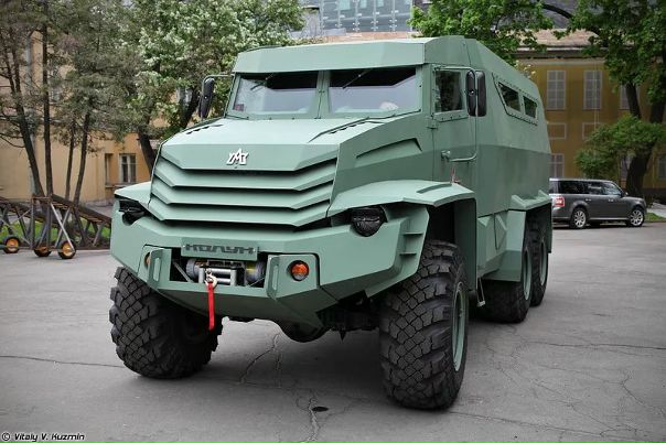 В России подобная машина была создана конструкторами «Военно-инженерного центра» совместно со специалистами кафедры «Колесные машины» МГТУ им. Баумана.