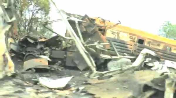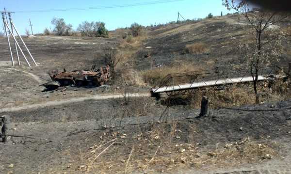 Такой же уничтоженный бронированный «Урал» у села Новодворское Донецкой области, фото и видео: