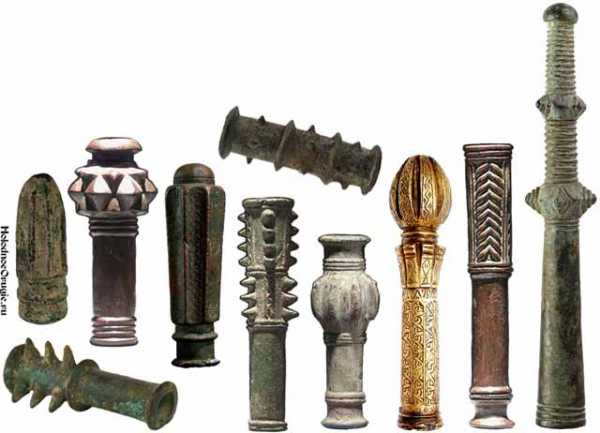 Археологические находки свидетельствуют о том, что штыри могли быть достаточно длинными и даже более тяжелыми, чем само навершие.