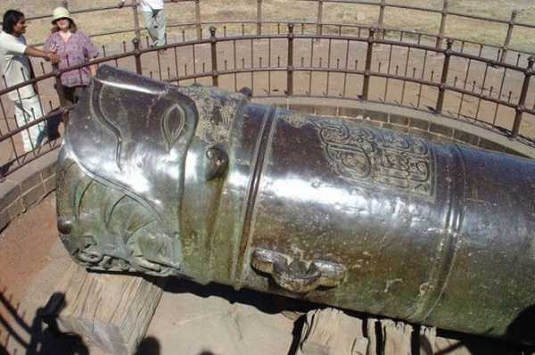 То, что Царь-пушка – это не просто всплеск энтузиазма московских литейщиков, доказывает и существование ещё более громадного орудия Малик-э-Майдан. Оно было отлито в Ахман-дагаре в Индии в 1548 году, и имеет массу целых 57 тонн. Там историки тоже поют песни о 10 слонах и 400 буйволах, тащивших эту пушку. Это такое же по назначению осадное орудие, как Царь-пушка, только тяжелее на 17 тонн. Что это, второй исторический казус в это же историческое время? И сколько ещё таких орудий надо обнаружить, чтобы понять, что их в то время отливали, доставляли к осаждённым городам и практически использовали? Если мы сегодня не понимаем, как это происходило, значит, таковы наши познания.