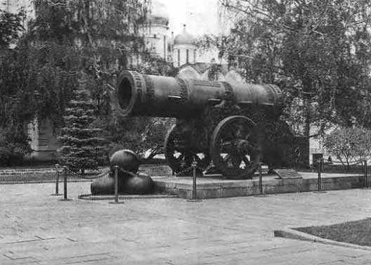 Рис. 7.4. 40-тонная Царь пушка была отлита мастером Андреем Чоховым в правление царя Фёдора Иоанновича. Об этом говорит надпись на верху её жерла. Фотография 2003 года.