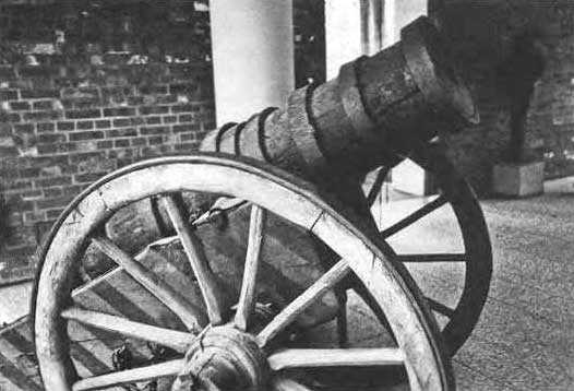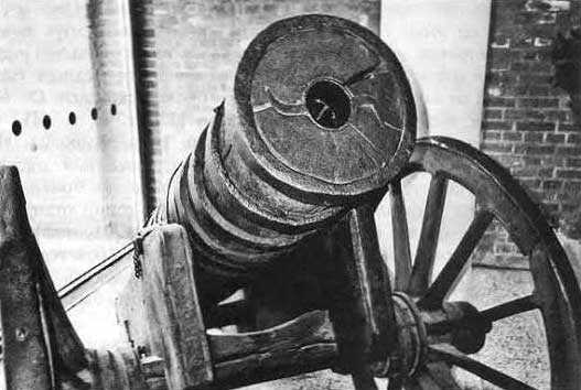 Рис. 7.19. Вид спереди пушки из Германского Национального Музея (Нюрнберг). Деревянный ствол, окружающий внутренний, металлический, окован снаружи обручами для прочности. Вероятно, таким способом облегчали полевые пушки. Фотография 2000 года.