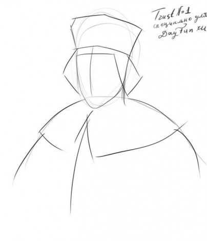 Шаг первый. Сначала делаем карандашом наброски головы, а потом рисуем туловище.